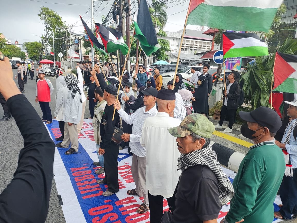 Aksi yang berlangsung sejak pukul 14.00 sampai dengan 17.00 Wita itu dilakukan oleh massa yang tergabung dalam Forum Peduli Pembebasan Palestina (FP3) Kalimantan Selatan.