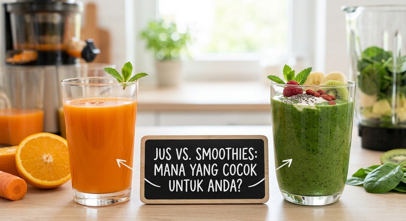 Keduanya adalah cara yang luar biasa untuk meningkatkan konsumsi buah dan sayur harian. Jika jus adalah “suplemen cair”, maka smoothies adalah “makanan utuh yang dihaluskan”. Kuncinya tetap satu: hindari penambahan gula pasir atau kental manis berlebih agar manfaat alaminya tidak hilang.
