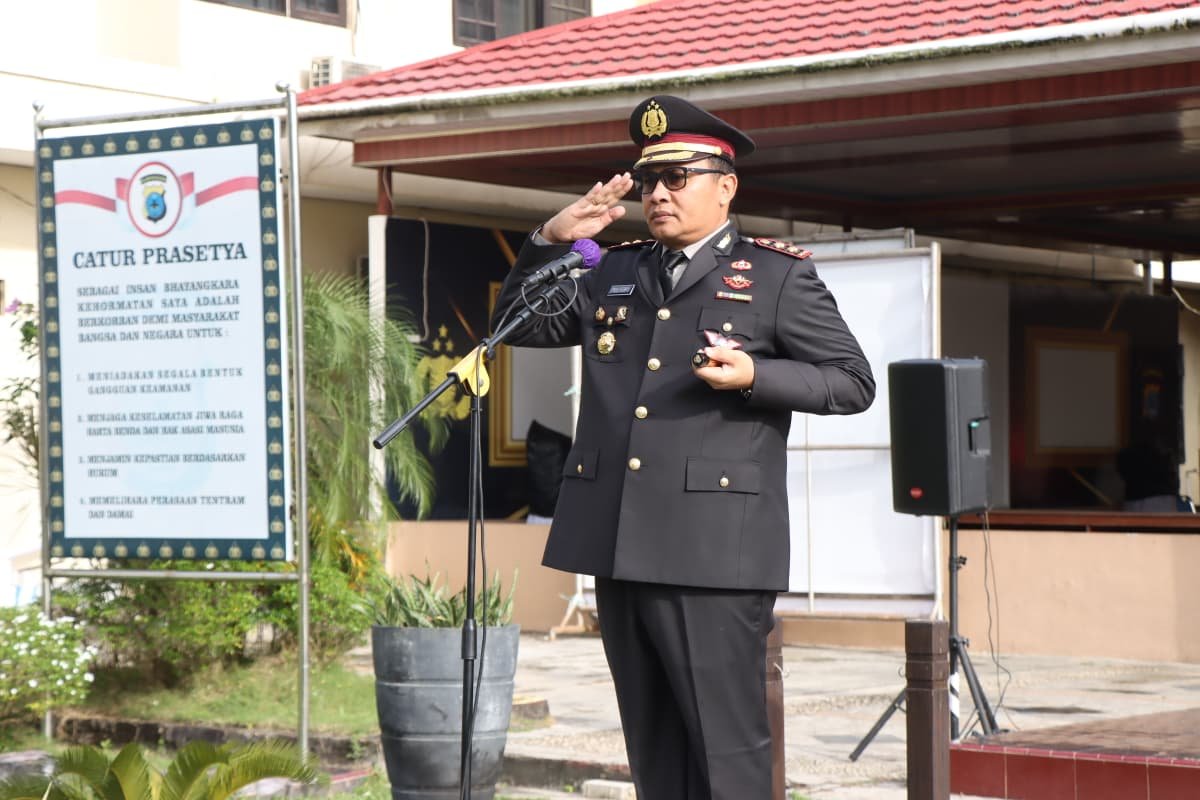 Kapolres Banjarbaru, AKBP Pius X Febry Aceng Loda, bertindak sebagai Inspektur Upacara Peringatan Hari Sumpah Pemuda ke-97 pada Selasa (28/10/2025) pagi. Foto: Humas Polres Banjarbaru