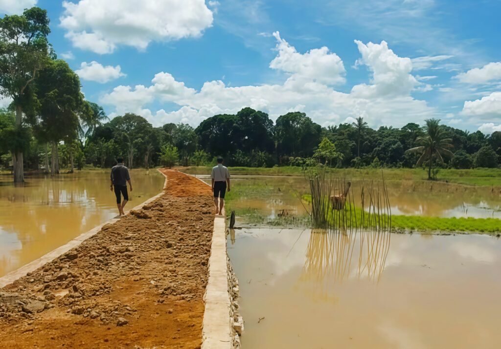 Abdul Karim menjelaskan, rehabilitasi jalan tani sangat penting karena selama ini jalan setapak tersebut sering terendam air saat musim hujan. Kondisi ini memaksa para petani menggunakan perahu untuk mencapai sawah mereka.