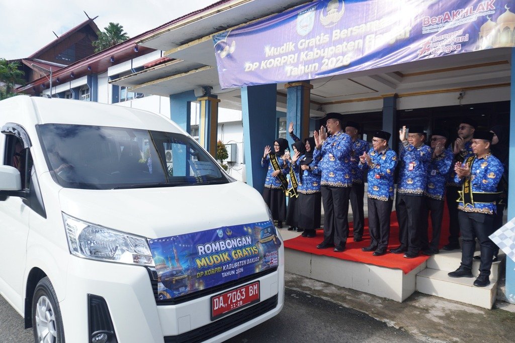 MediaKalsel, Martapura – Pemerintah Kabupaten (Pemkab) Banjar melalui Korps Pegawai Republik Indonesia (Korpri) resmi meluncurkan program Mudik Gratis 2026 yang dirangkai dengan Pasar Murah Ramadan 1447 Hijriah. Kegiatan ini dipusatkan di halaman Kantor Bupati Banjar, Selasa (17/3/2026) pagi.
