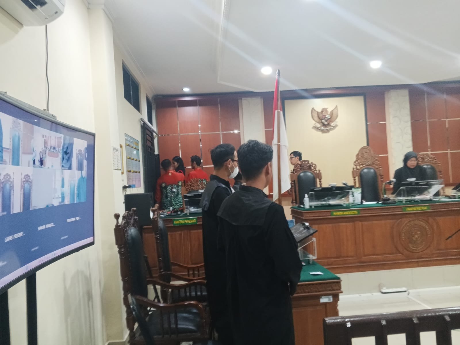Tampak kedua terdakwa yamg merupakan kakak beradik yakni Fatimah binti Muhammad Mimsyah dan Parhan alias Papar bin Muhammad Mimsyah dihadirkan dalam sidang elektronik zoom meeting dari lapas Banjarbaru.